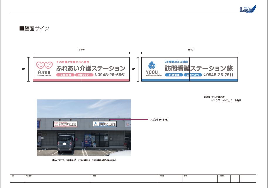 壁面看板から車体カッティングシートまで、全体的に統一感を持たせたサインの完成です!