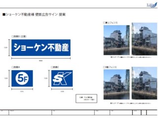 川端商店街にある不動産会社、ショーケン不動産様のサイン施工を行いました。