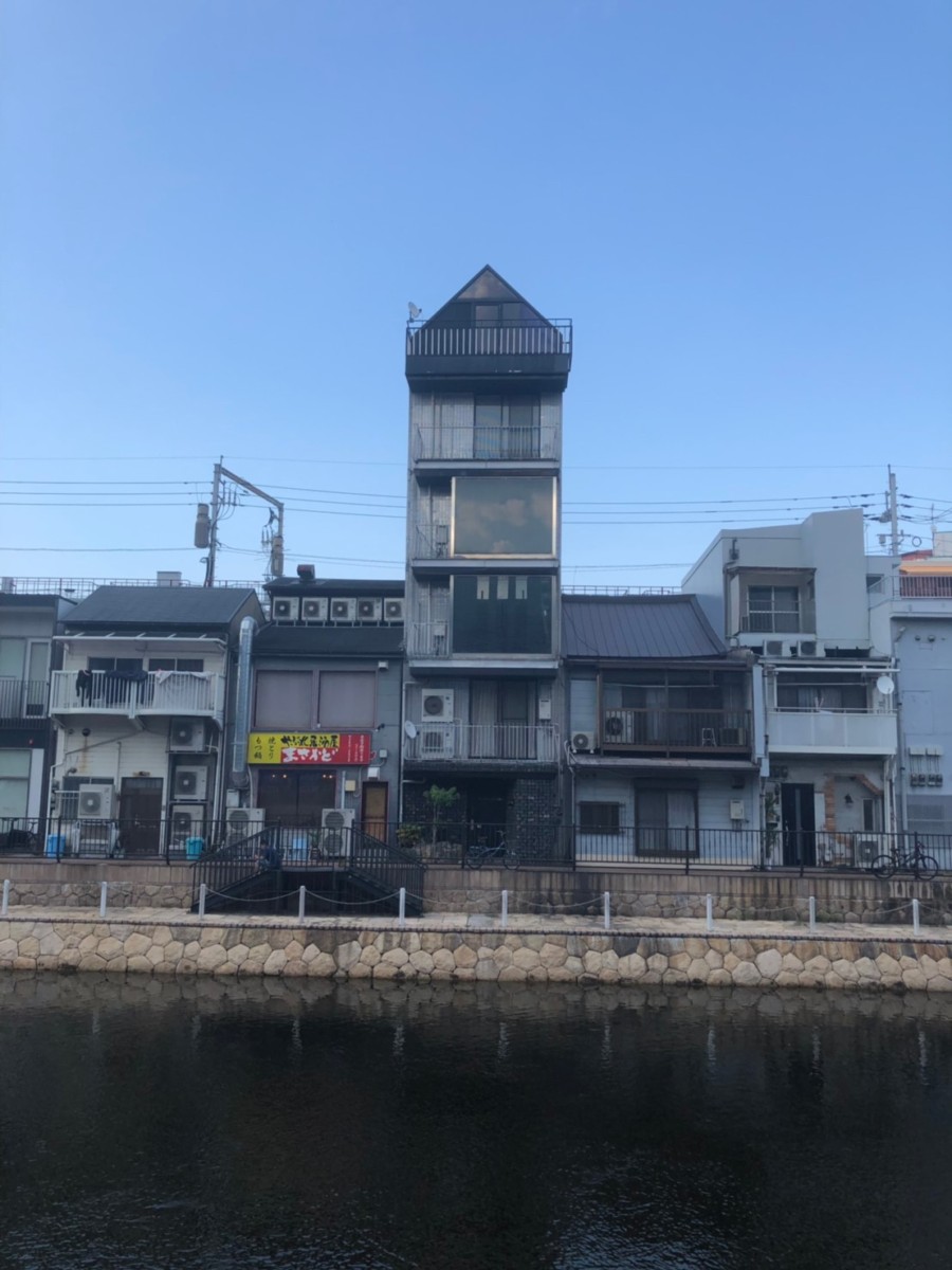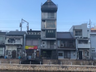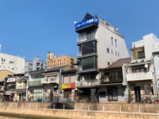 川端商店街には珍しく、6階建てのビルという立地条件を生かしたサインをご提案させていただきました。