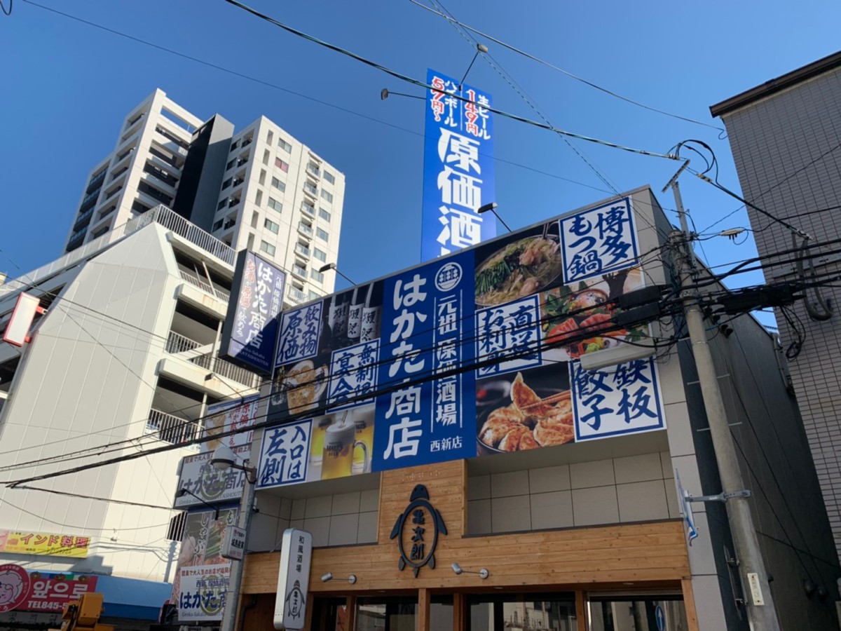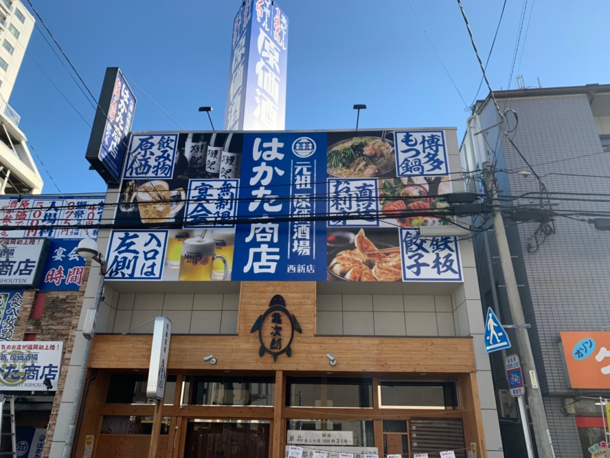 西新の原価酒場はかた商店様のサイン施工を行いました。