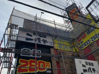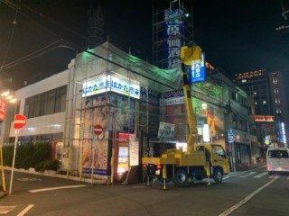 電照看板、壁面看板など今回かなり広範囲の施工を行いました。