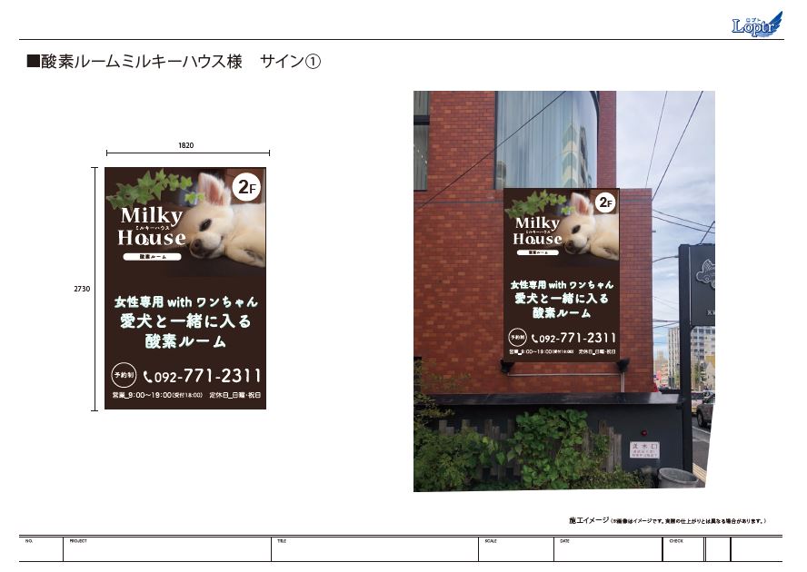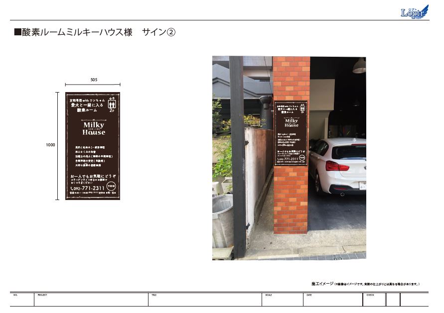酸素ルームMilky House様のサイン施工を行いました。