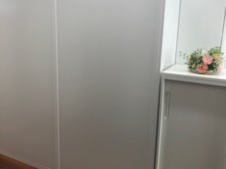 ティファニーブルーの可愛い色が、白のパーテーションに映えます。
