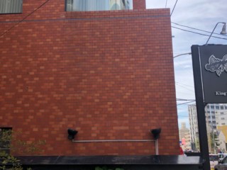 こちらのレンガ壁に、サインを施工していきます。