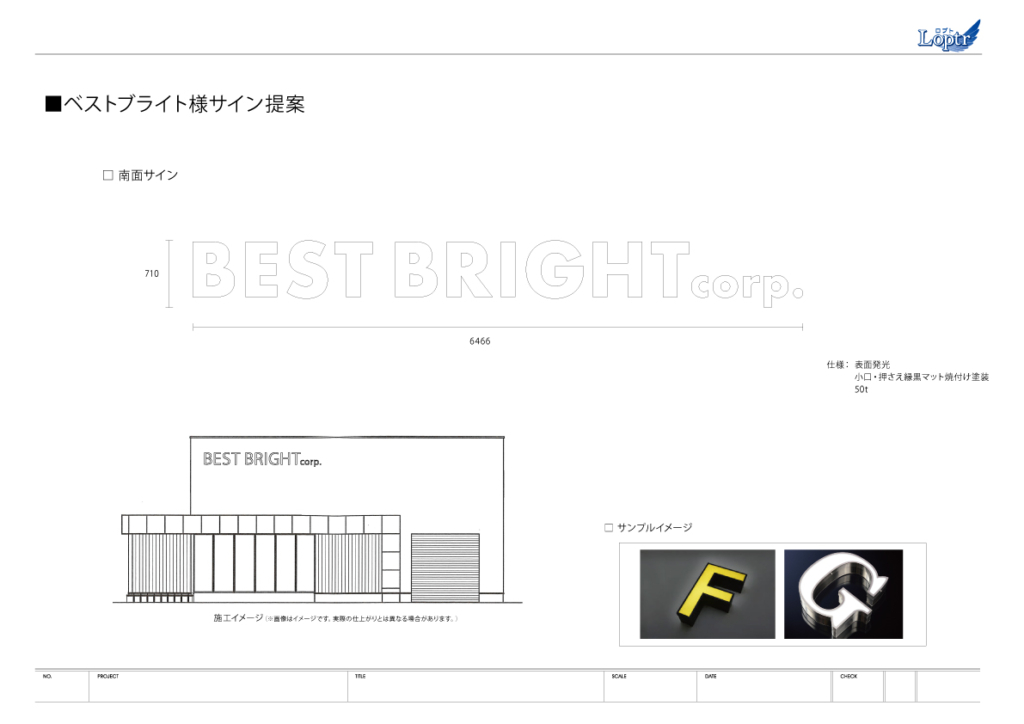 イメージが湧くように、文字サンプルの画像を添付し確認いただきました。