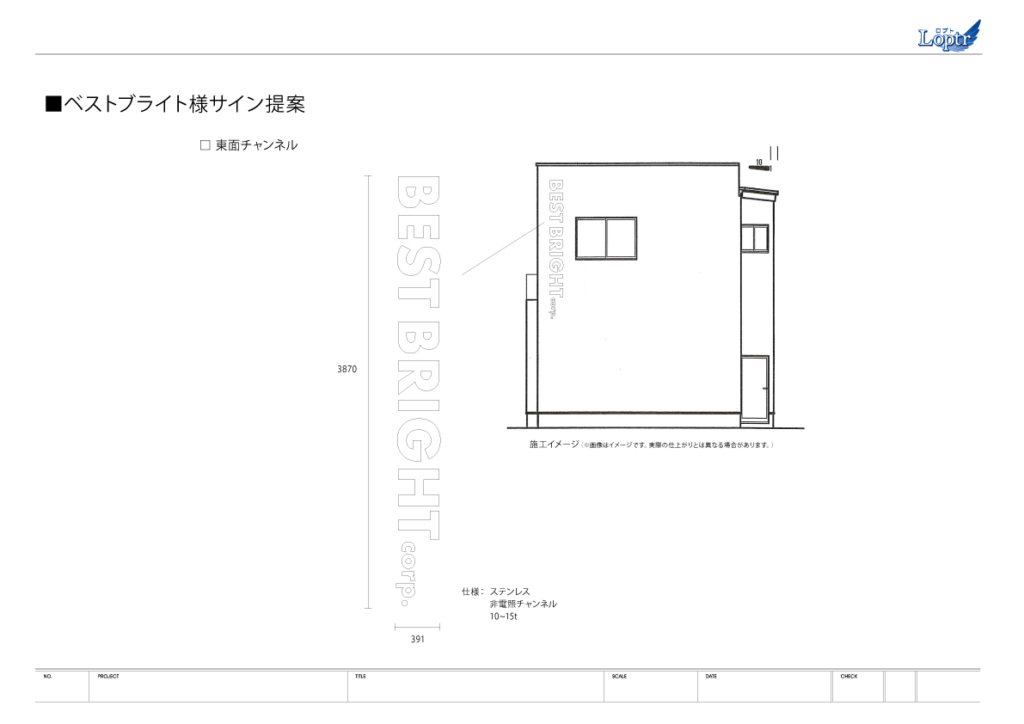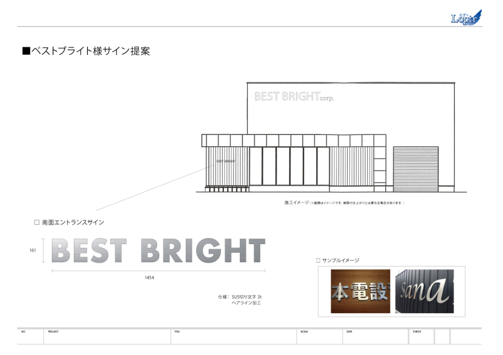 いつもお世話になっている、ベストブライト様の新社屋サイン施工を行いました。