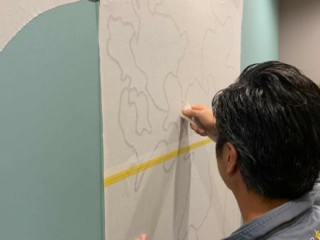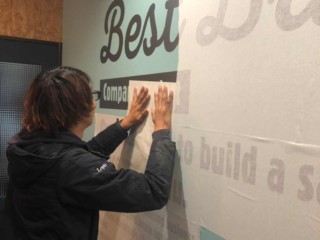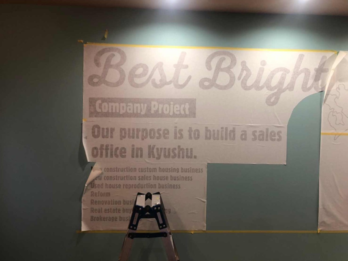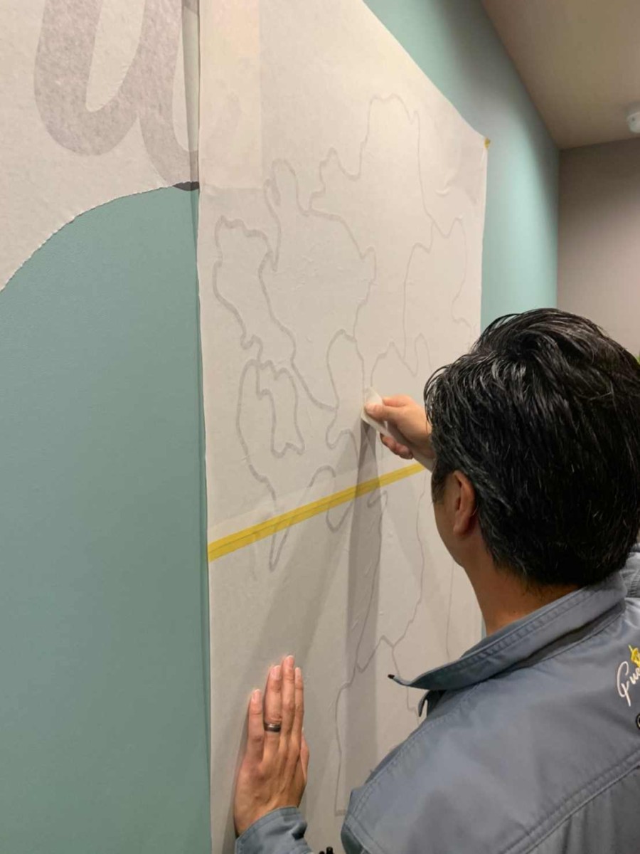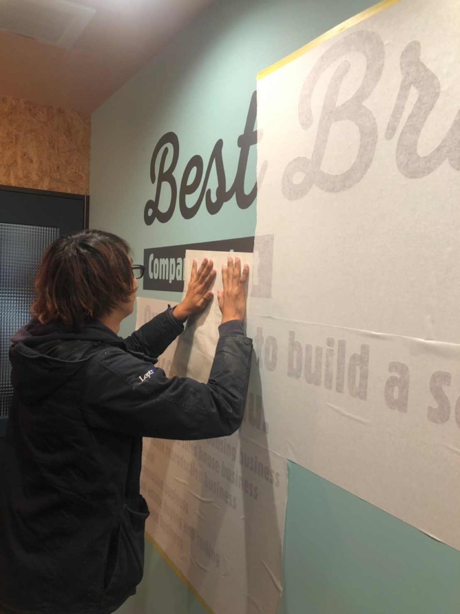 壁面は、カッティングシートを施工していきます。
