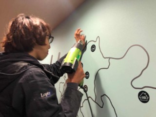 壁面に表面発光のサインを取り付けていきます。