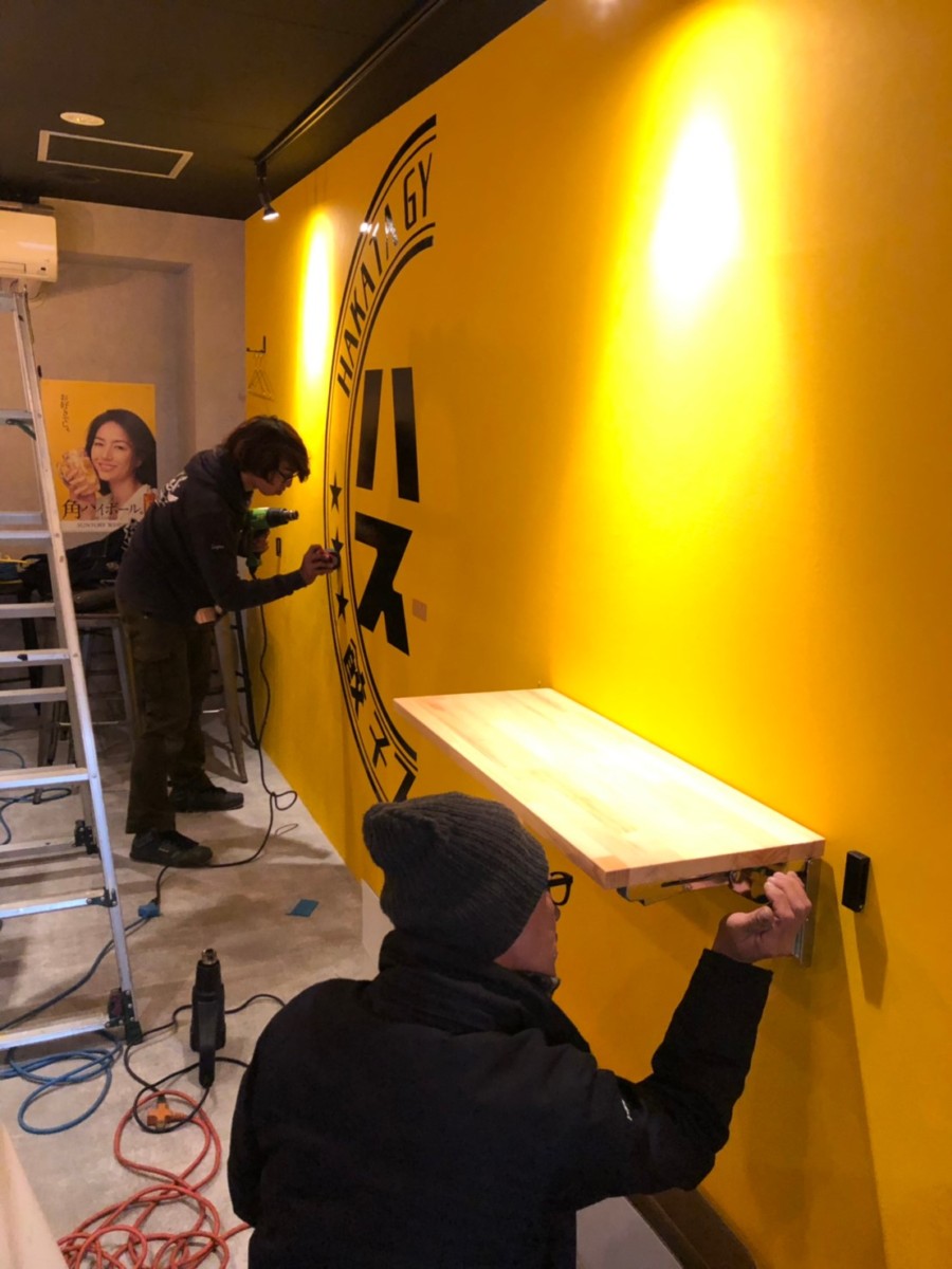 ネオンサインを取り付けるため、電気工事を行っています!
