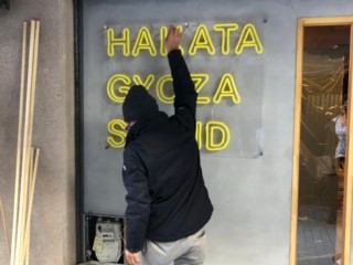 博多区中洲のハイスタ餃子様のサイン施工を行いました。