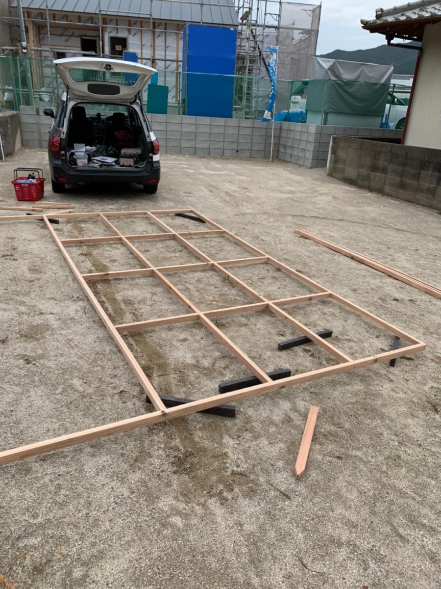 強度を保つため、木枠の組み方を考えて図面を起こしました。