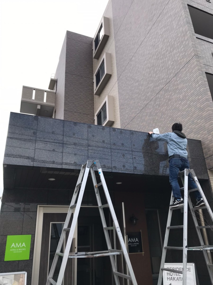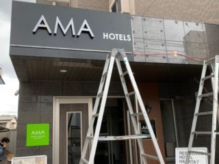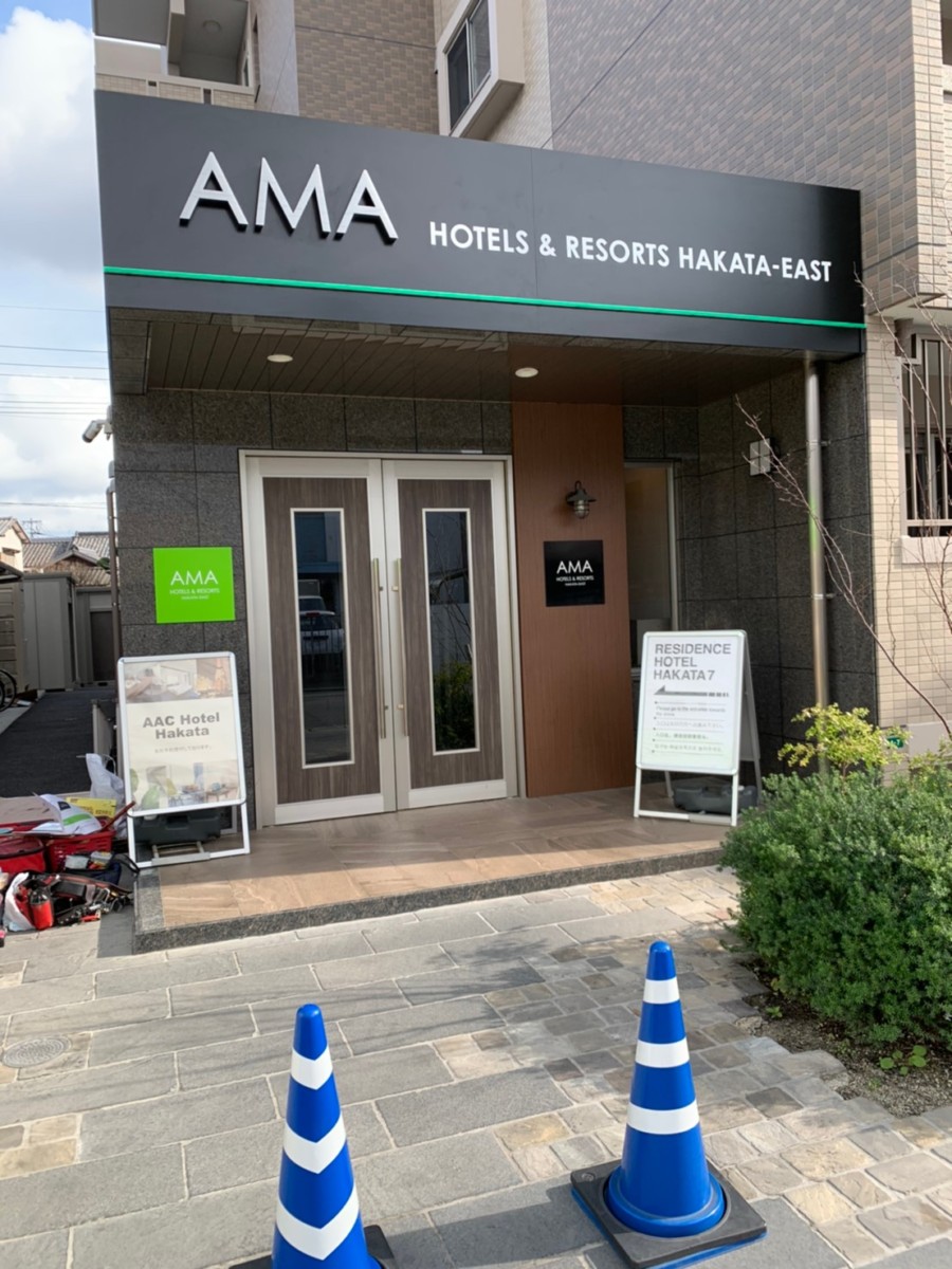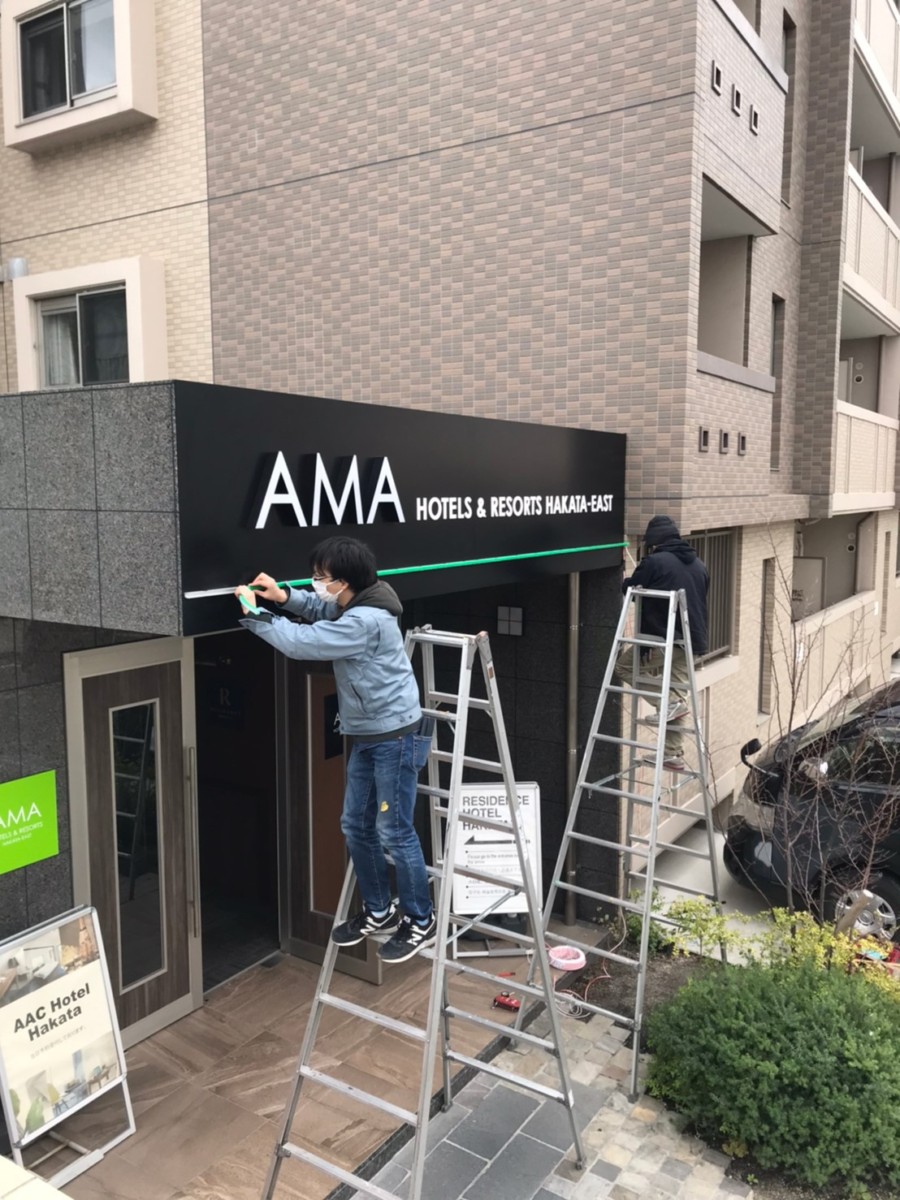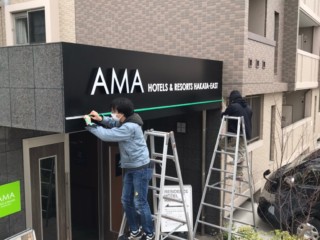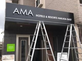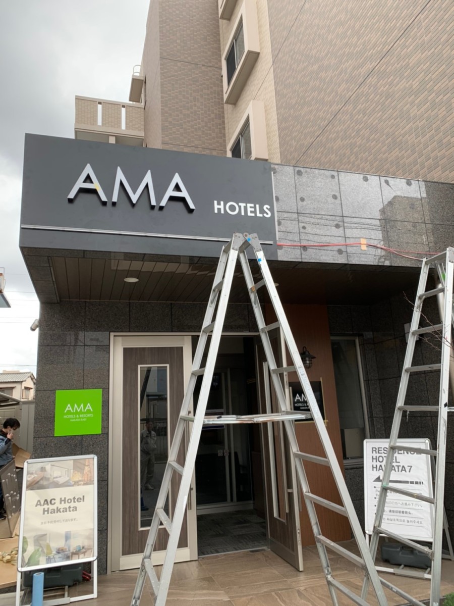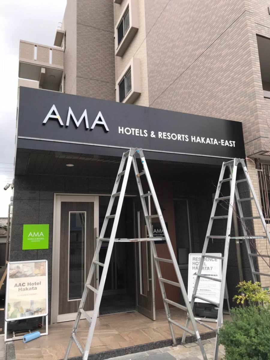 博多のレジデンス型ホテル、AMAホテル堅粕様のサイン施工を行いました。