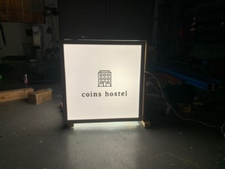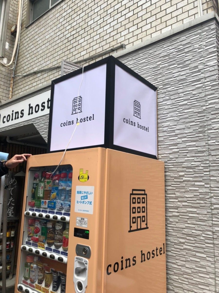 観光地にほど近く、立地条件の良い場所にあるcoins hostel様のサイン施工を行いました。