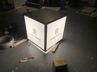 電照看板を製作し、点灯チェックを行い施工準備完了です。
