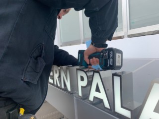 次は、表面発光の箱文字設置です。