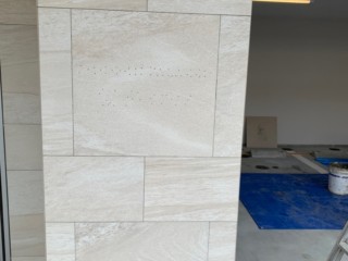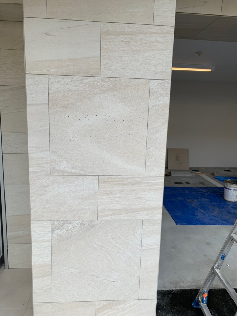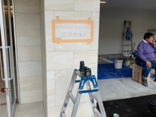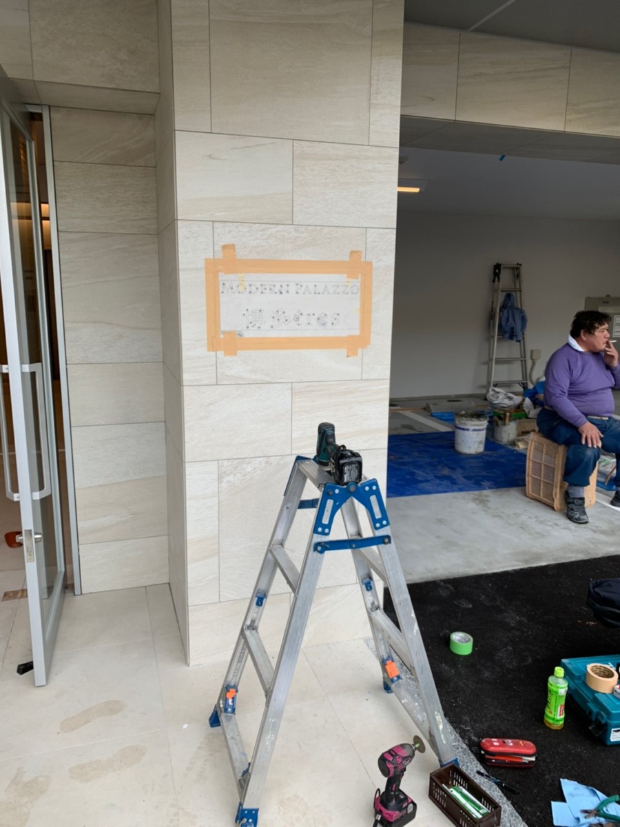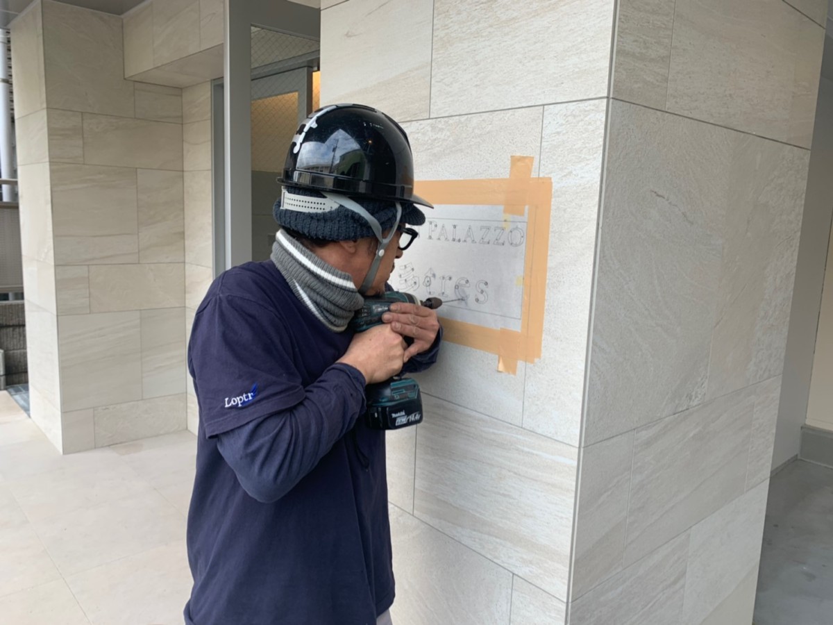 エントランス壁面に、切り文字をピン立てします。