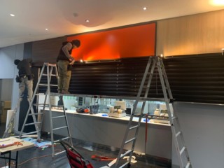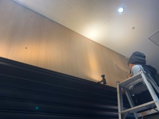 店舗上部にはダイノックシートを貼っていきます。