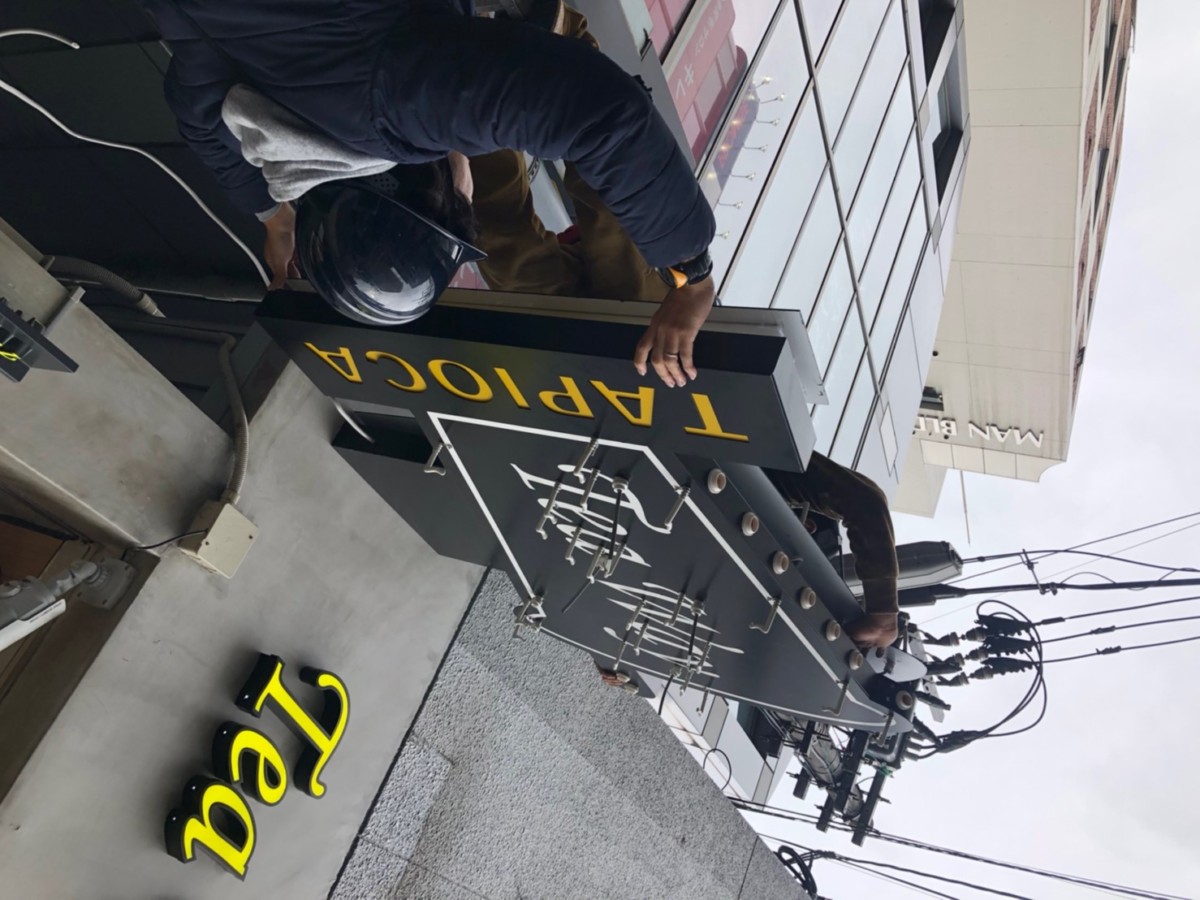 福岡市中央区にある、タピオカ店TEA WAY様のサイン施工を行いました。
