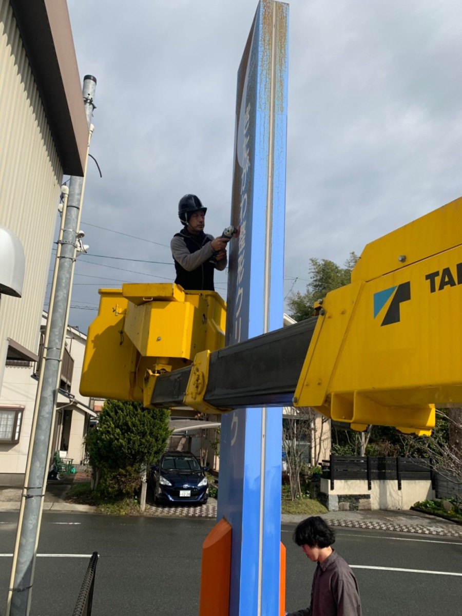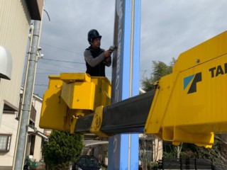 既存看板が劣化しているため、板面をリニューアルすることになりました。