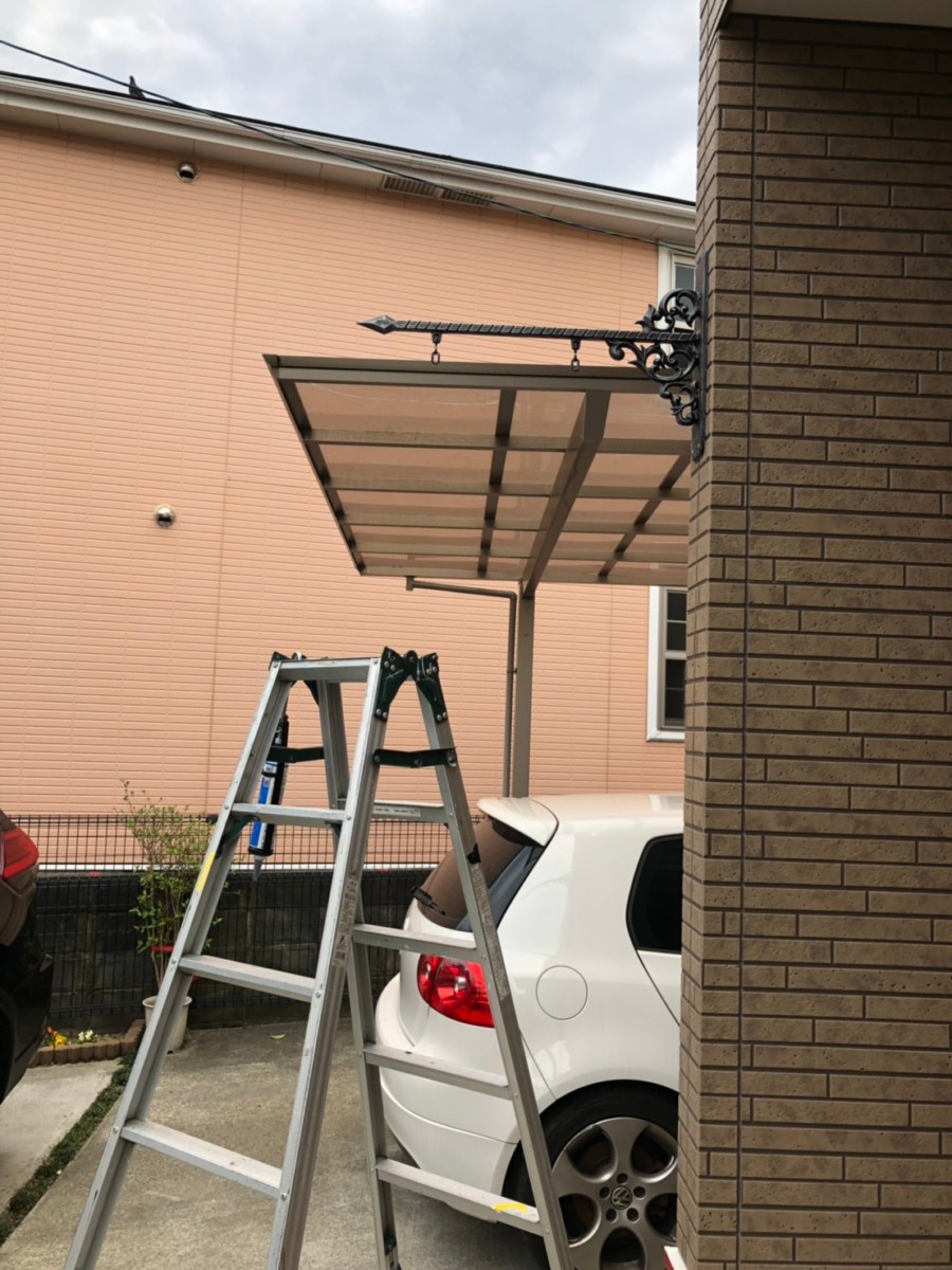 このアームに、アルミ複合板+出力シート貼りで製作したプレートを取り付けていきます。