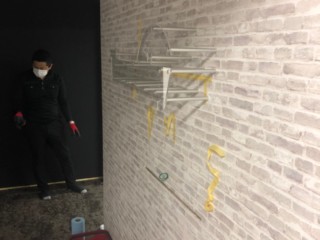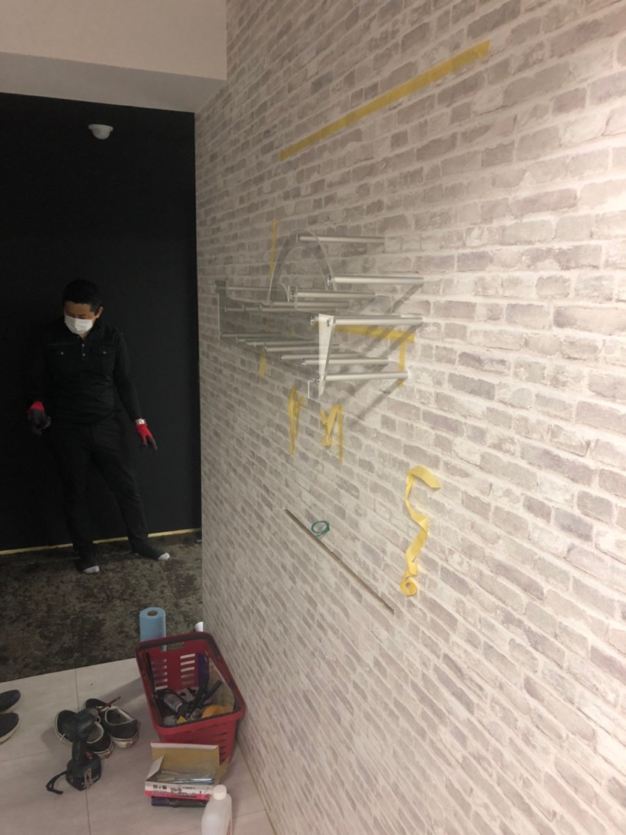 こちらの壁面にピン立て施工。