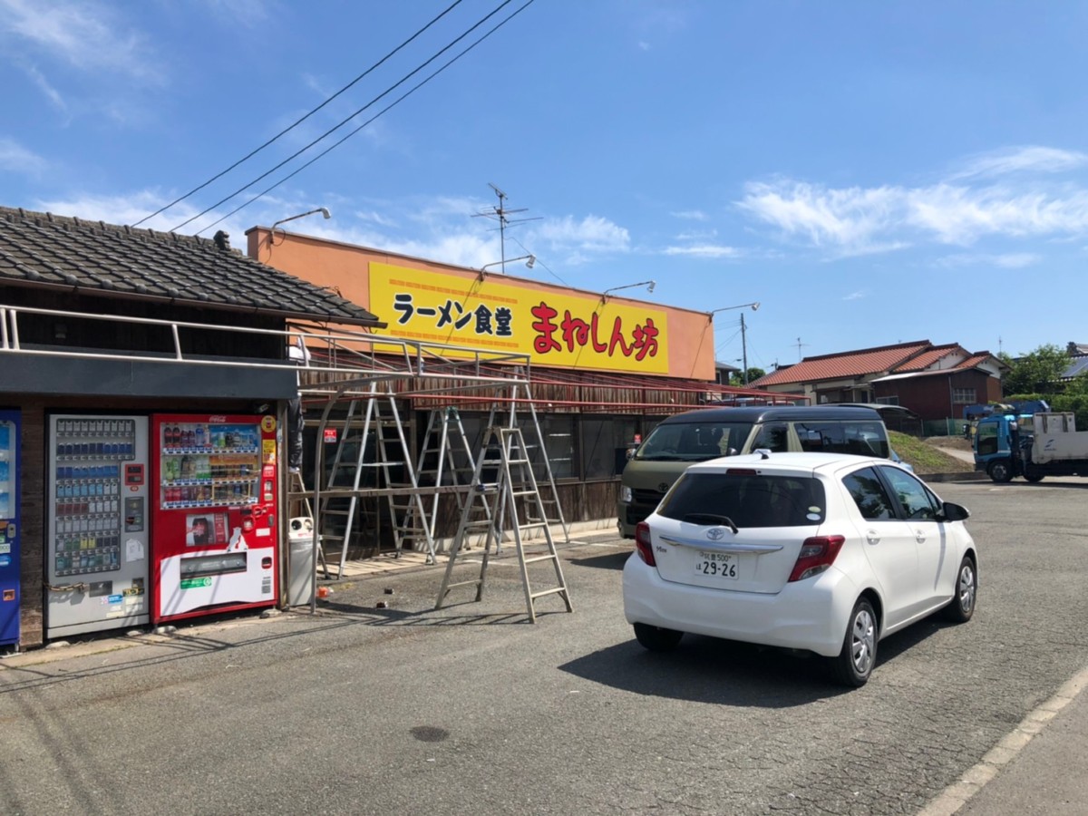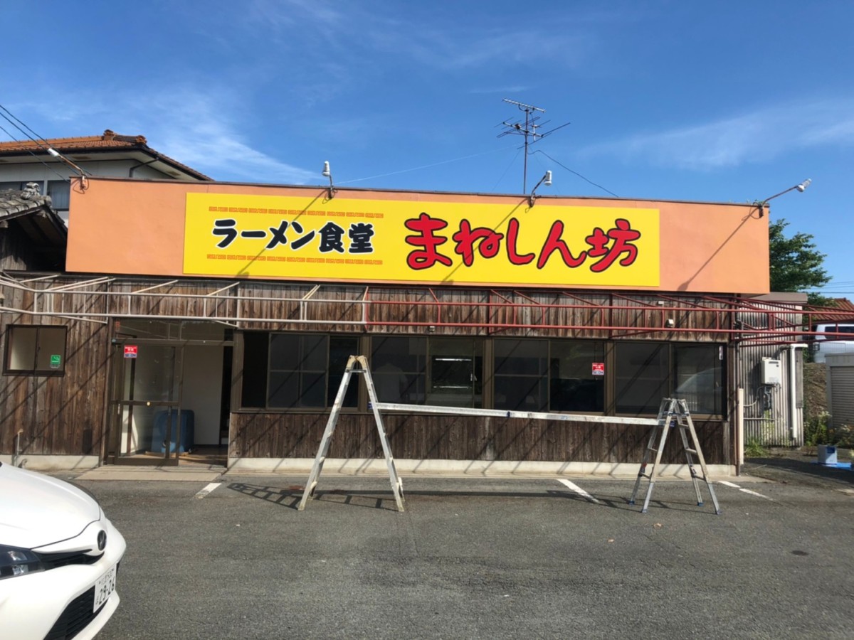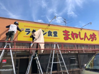飯塚市にオープンのラーメン食堂まねしん坊様、サイン施工を行いました。